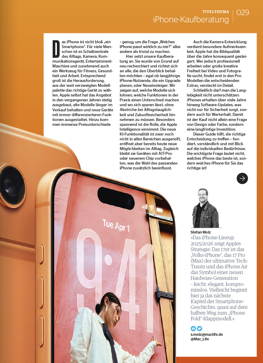 Von iPhone 16e über iPhone Air bis iPhone 17 Pro Max: Nie war die Auswahl größer! Unsere Kaufberatung hilft dir, genau das Modell zu finden, das wirklich zu dir... Weiterlesen